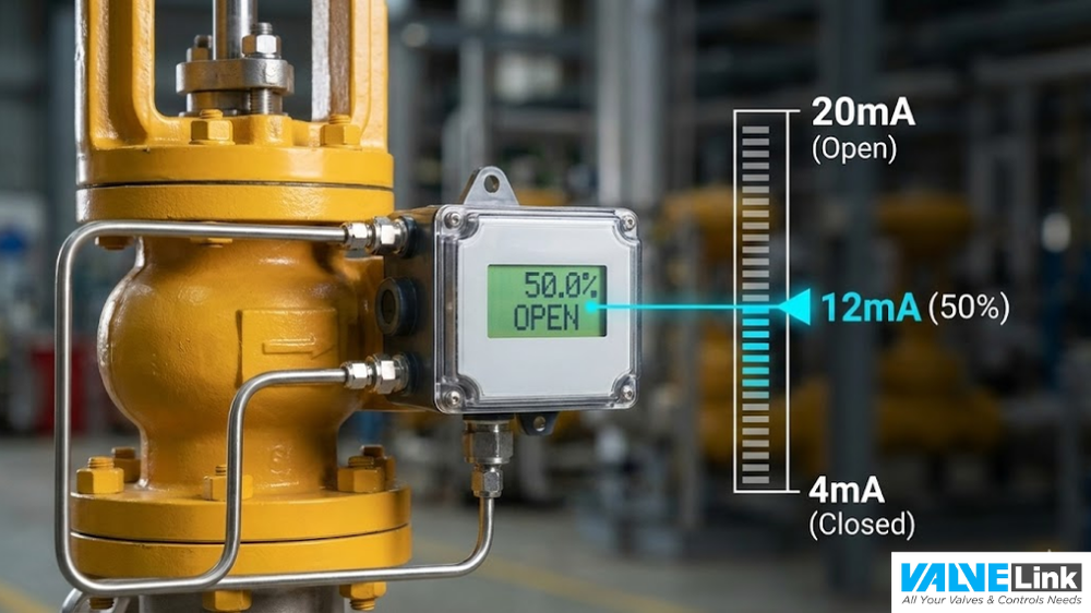 - Hiểu Lệnh: Positioner được lập trình để hiểu rằng 4mA = 0% (Đóng), 20mA = 100% (Mở). Vì vậy, nó hiểu 12mA nghĩa là “Đến vị trí 50%”.