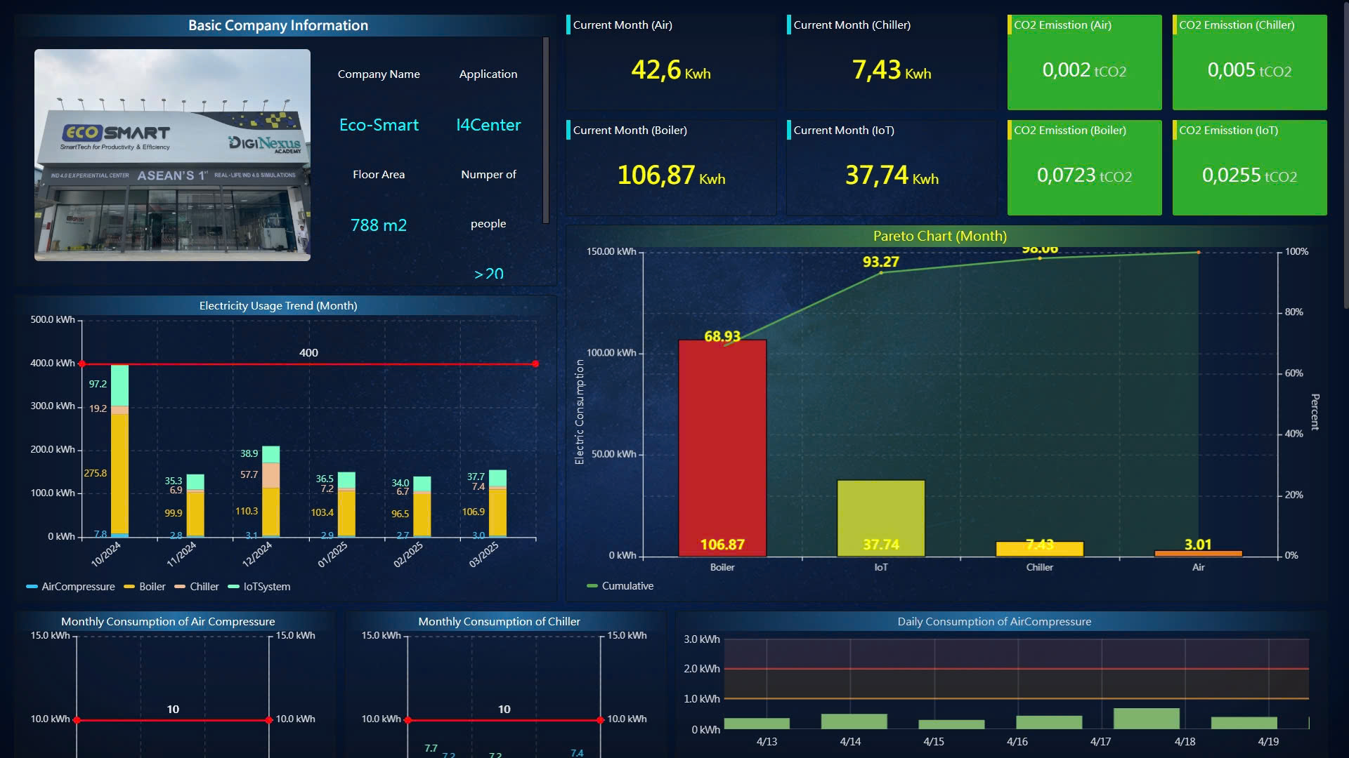 Tối ưu hóa hiệu quả sử dụng năng lượng (hơi, điện, nước) tại nhà máy thông qua hệ thống giám sát và phân tích dữ liệu theo thời gian thực.