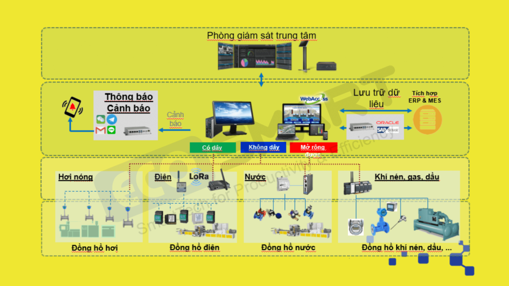 • Giám sát năng lượng hơi, điện, nước theo thời gian thực trên Web/App
