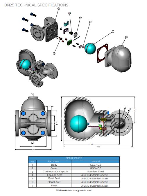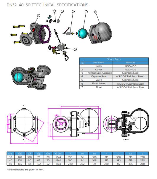 Thông số kỹ thuật Bẫy hơi cơ học Ayvaz Model SK-80