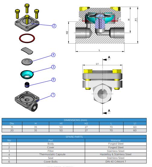 Thông số kỹ thuật Bẫy hơi nhiệt tĩnh Ayvaz Model TKK-21