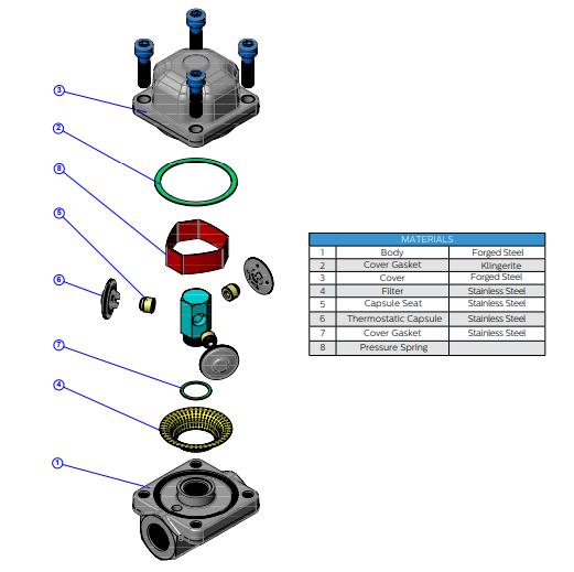 Bẫy hơi nhiệt tĩnh Ayvaz Model TKK-3 có khả năng chống ăn mòn và búa nước cao. Bộ lọc nằm bên dưới nắp. Quá trình vệ sinh rất dễ dàng. Thân và nắp được làm bằng thép rèn. Các bộ phận khác bằng thép không gỉ. TKK-3 có thể được sản xuất với 3 tùy chọn viên nang giống như bất kỳ bẫy hơi Ayvaz nào.