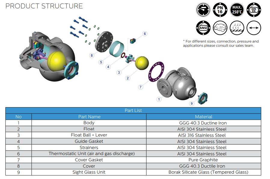 Cấu tạo Bẫy hơi phao Ayvaz Model SK-55LC