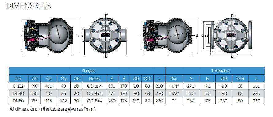 Thông số kỹ thuật Bẫy hơi phao Ayvaz Model SK55L