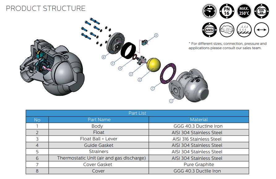 Cấu tạo Bẫy hơi phao Ayvaz Model SK55L