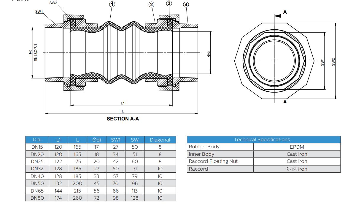 Cấu tạo Khớp nối giãn nở cao su cầu đôi Ayvaz Model DKK-10