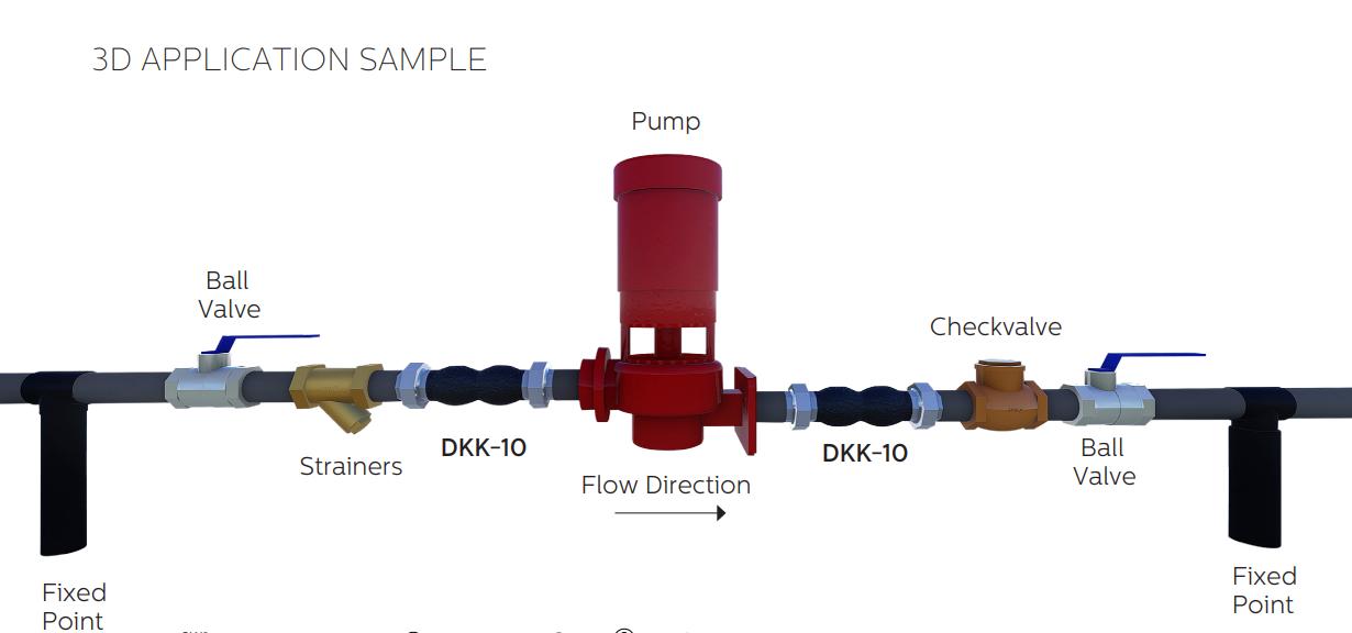 Khớp nối giãn nở cao su cầu đôi Ayvaz Model DKK-10 có thể hấp thụ rung động và tiếng ồn mạnh từ mọi hướng nhờ cấu trúc mềm mại. Sản phẩm này giúp giảm áp lực và đảm bảo cân bằng trục trong hệ thống.