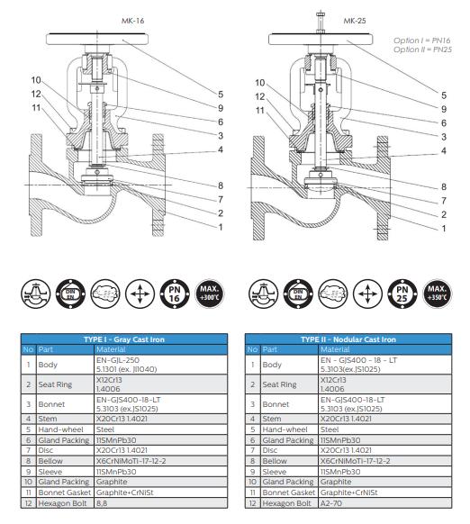 Thông số kỹ thuật Van chặn Ayvaz Model MK-16