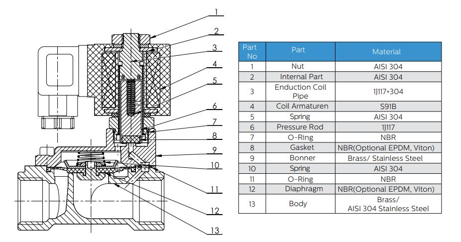Cấu tạo Van điện từ Ayvaz Model A2W