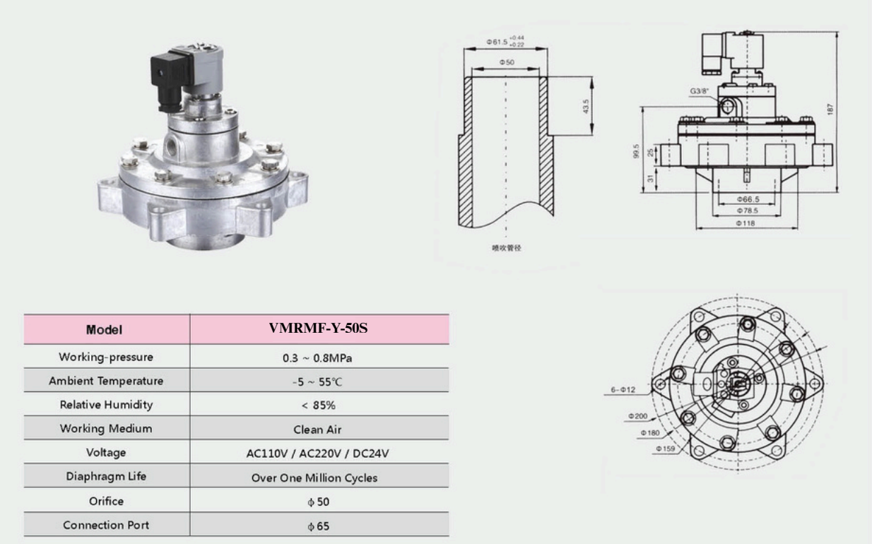 - VMRMF-Y-50S: Kích thước lỗ nòng 50 cùng cổng kết nối 65.