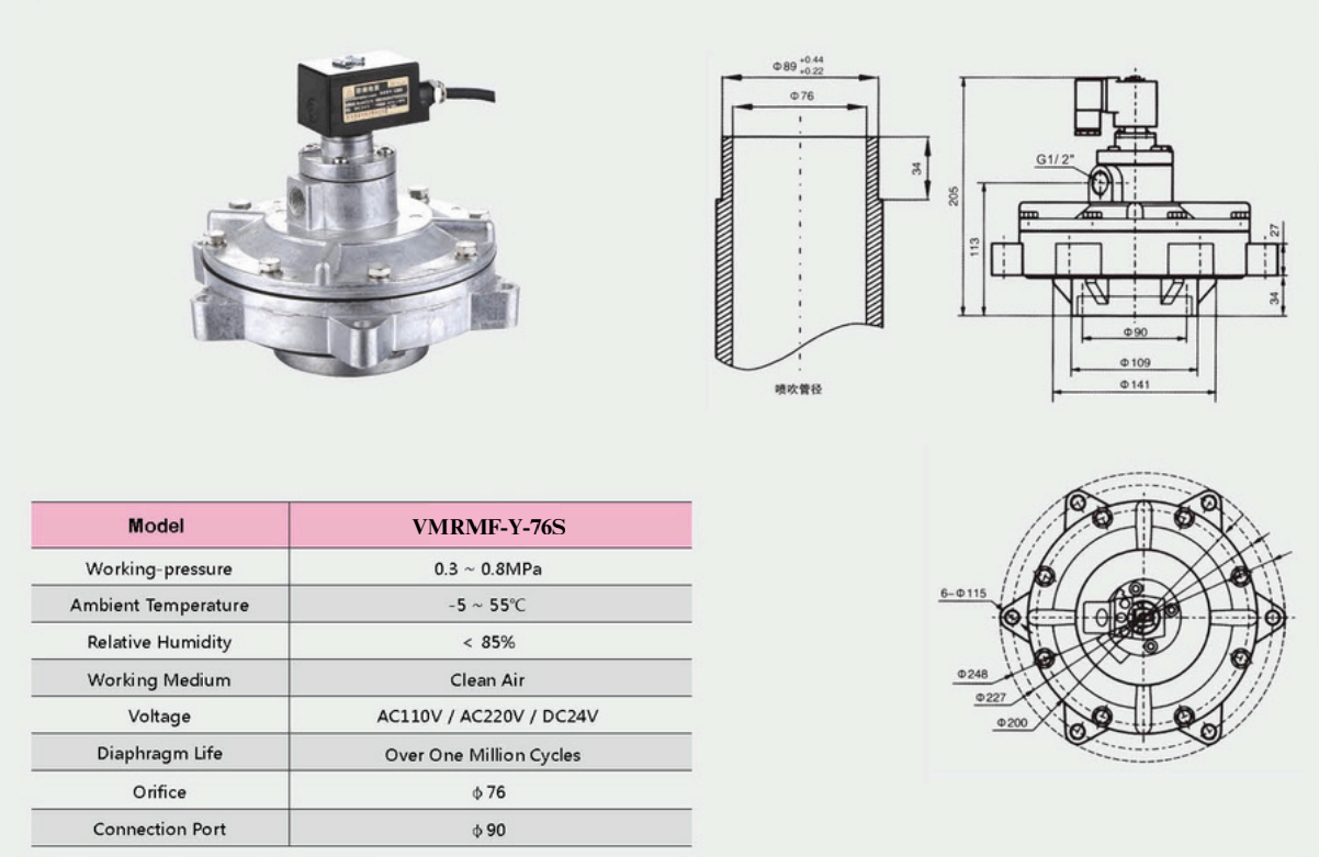 - VMRMF-Y-86S: Kích thước lỗ nòng 80, đi kèm cổng kết nối lớn 90.