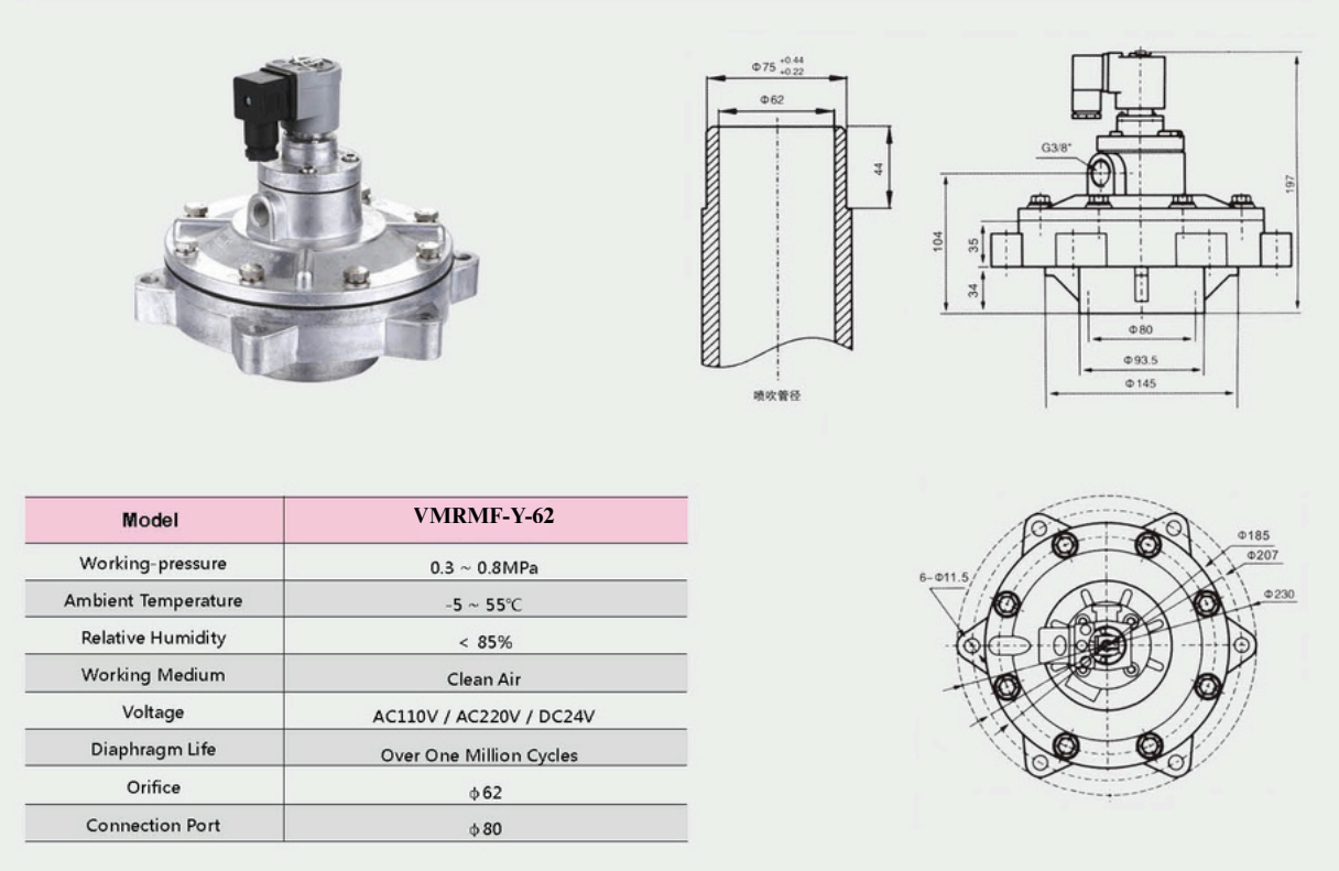 - VMRMF-Y-62: Kích thước lỗ nòng 62 và cổng kết nối 80.