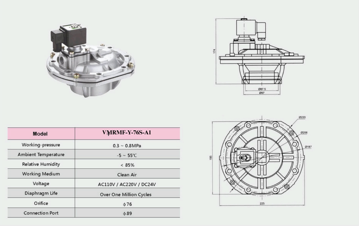 Dòng sản phẩm Quick Mount Pulse Solenoid Valve thuộc sê-ri VMAL của thương hiệu Valvelink được thiết kế chuyên dụng để đáp ứng các nhu cầu kiểm soát quy trình công nghiệp (process control needs). Với cấu tạo lắp đặt nhanh, độ bền cao và khả năng hoạt động ổn định trong nhiều điều kiện môi trường, đây là giải pháp van xung điện từ lý tưởng cho các hệ thống làm sạch bụi hoặc kiểm soát khí nén chuyên nghiệp.