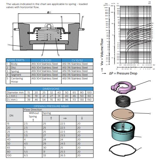 Thông số kỹ thuật Van một chiều inox Ayvaz Model CV10/S1 – S2