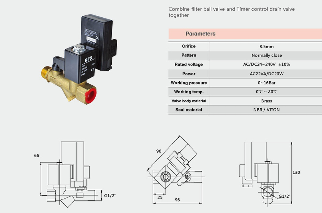(Lưu ý: Đối với model kết hợp van bi lọc và van xả tự động, áp suất làm việc từ 0-16Ba, nhiệt độ làm việc từ 0°C-80°C, orifice 3.5mm và sử dụng vật liệu làm kín NBR/VITON.)
